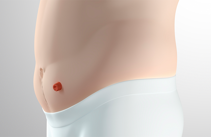 Ein Stoma hat eine rote Farbe. Das liegt daran, dass es sich um eine Schleimhaut handelt, genau wie die Schleimhaut in Ihrem Mund. Ein Stoma ist nicht schmerzempfindlich, es tut also nicht weh, wenn Sie es berühren. Wenn Sie das Stoma reinigen, kann es zu leichten Blutungen kommen. Dies ist vor allem zu Beginn ganz normal, die Blutungen sollten nach kurzer Dauer wieder aufhören
